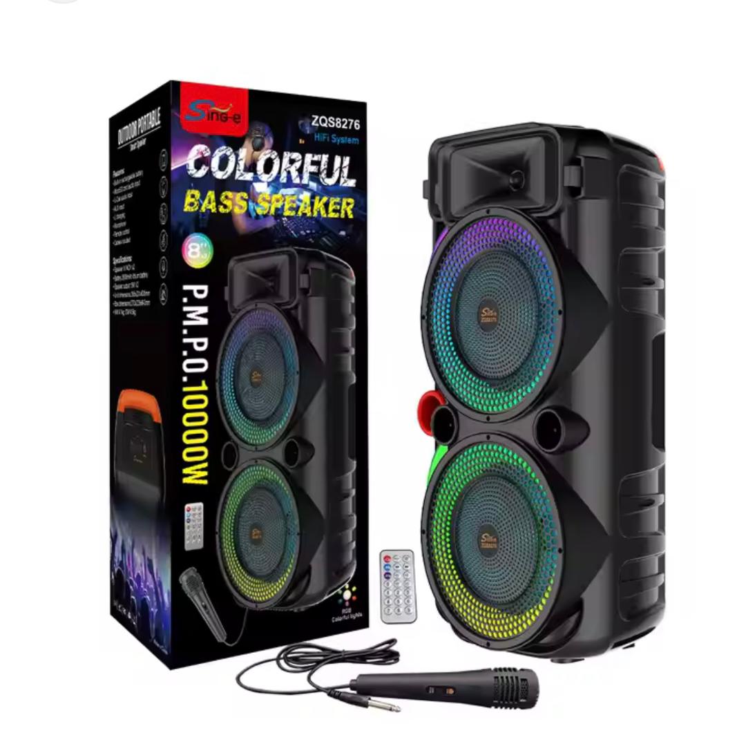 - دارای میکروفون با سیم - ورودی کارت حافظه - ورودی USB - رقص نور RGB - ورودی AUX - دارای ریموت کنترل - دارای ۲ عدد بلندگوی ۸ اینچی - ظرفیت باتری ۳۶۰۰ میلی آمپر ساعت